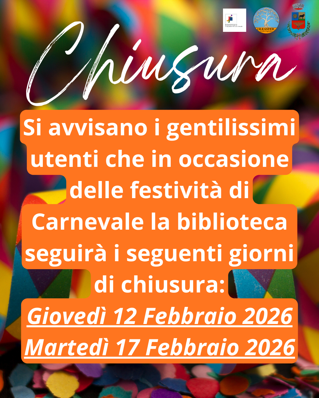 Avviso di chiusura della biblioteca in occasione delle festività di Carnevale.